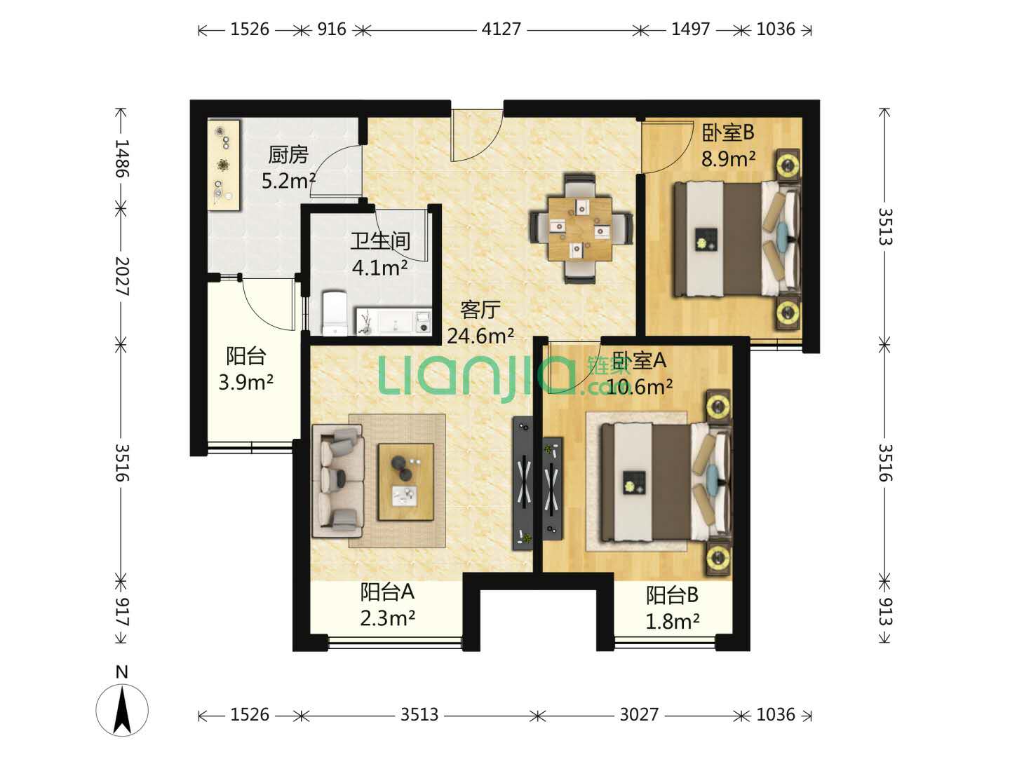 燕郊首爾林蔭大道小區(qū)南向兩居室戶型,出租型住宅裝修,